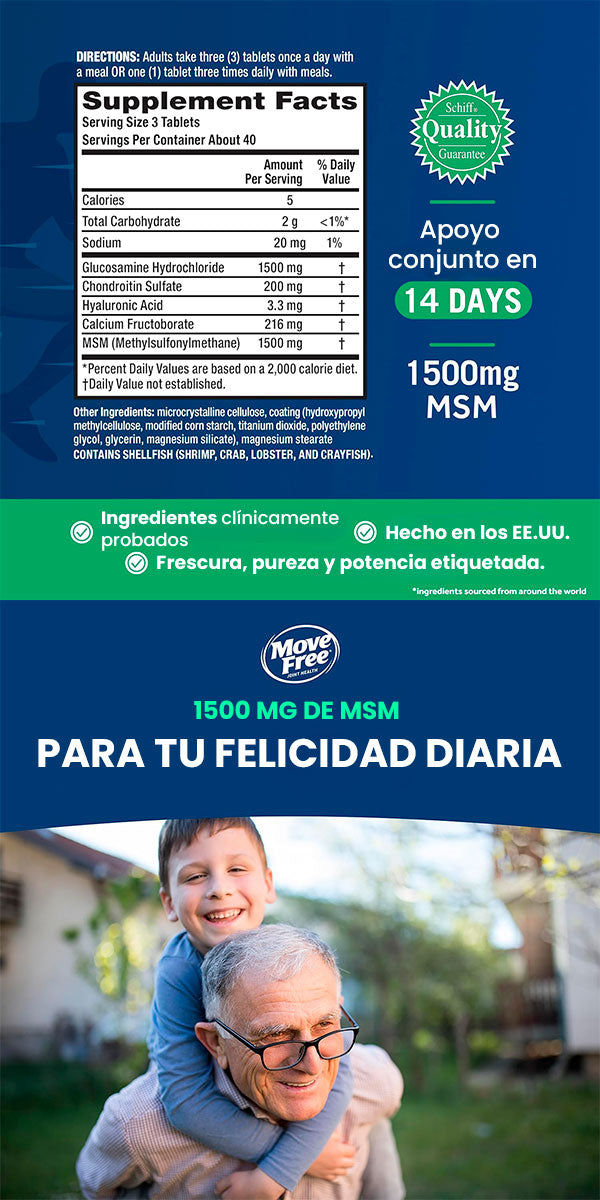 🔵Move Free MSM 1500 mg X120 CÁPSULAS con Glucosamina y Condroitina Soporte Avanzado para Articulaciones Activas 🏃‍♀️
