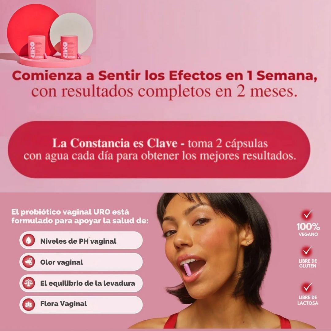 URO combina 4 cepas de Lactobacillus con prebióticos XOS para mantener tu pH vaginal en niveles saludables, reduciendo olores y promoviendo una flora vaginal equilibrada